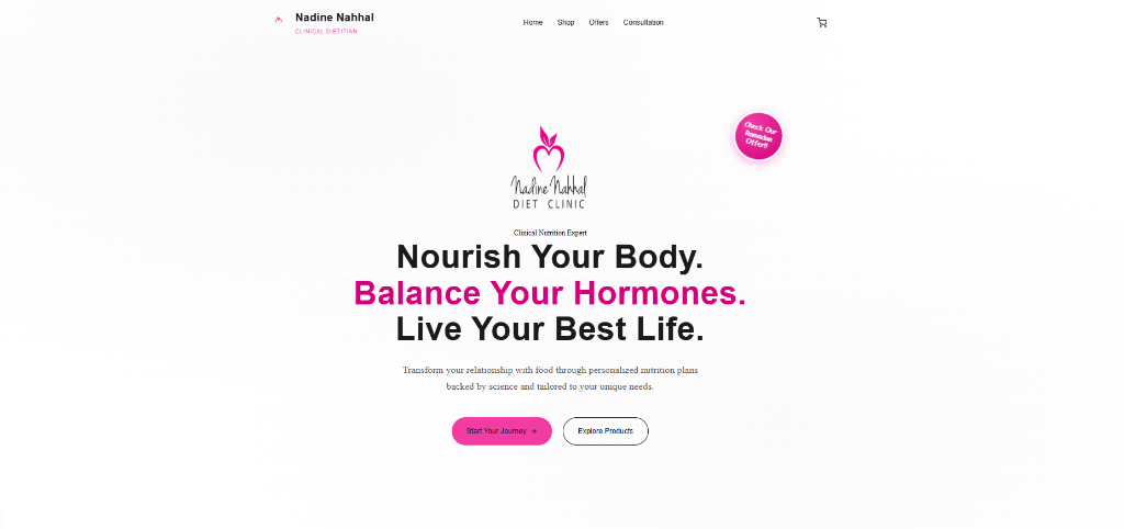 A comprehensive wellness and nutrition website for Dr. Nadine Nahhal, combining professional dietitian services with an integrated e-commerce platform for health products.